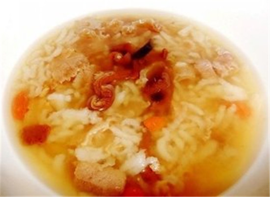 (3)粳米快熟的时候放入磨好的药末,然后一起煮,等煮烂以后,放入白糖调味即可。